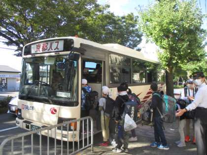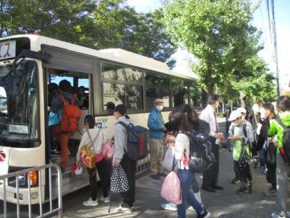 予定通りの時刻に、子どもたちを乗せたバスが出発しました。保護者の方もたくさんお見送りに来ていただきました。