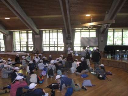 入所式の後は,荷物を置いて先生からのお話がありました。その後は、学年ごとと全体での記念撮影を行いました。