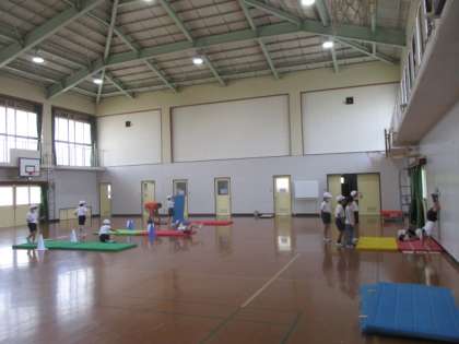 今日の3校時、1年生は国語でしらせたいな見せたいなの学習でした。段落を作って文を書く練習をしていました。2年生は、体育でマットあそびの学習でした。自分たちでいろんな技に挑戦していました。