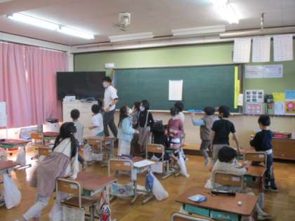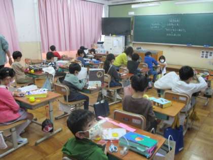 今日の5校時、1年生は図工でかざってなにいれようの学習でした。いろいろとアイデアを考えていたようです。2年生は、算数でかけ算の学習でした。今日は、6の段を練習していたようです。