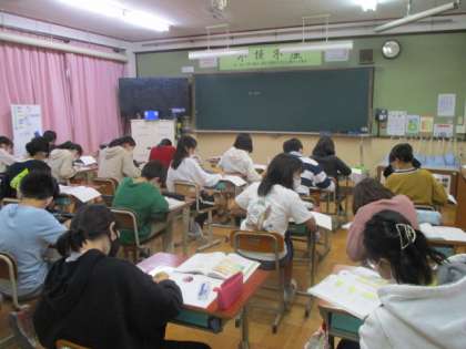 5年生は、総合的な学習の時間で働くことについてインタビューで聞いたことをまとめていました。タブレット端末でロイロノートを活用しながら取り組んでいました。6年生は、算数で図形の拡大と縮小の学習でした。今回は、学習のまとめの練習問題に取り組んでいました。