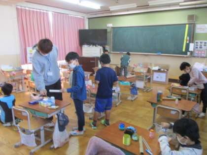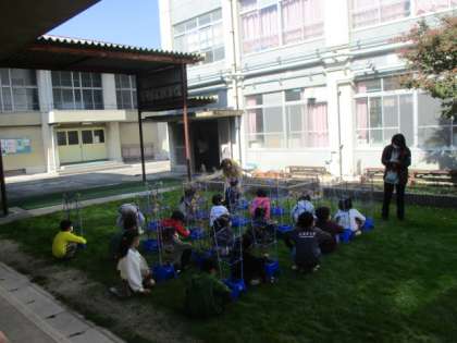 今日の3校時、ろ組では生活単元で山の家新聞づくりの学習でした。インタビューの仕方について、だいぶ考えていたようです。1年生は、生活科であきといっしょにの学習でした。アサガオのつるなどを丁寧に取っていました。2年生は、図工で音づくりフレンズの学習でした。今日もとても楽しみながら活動していました。