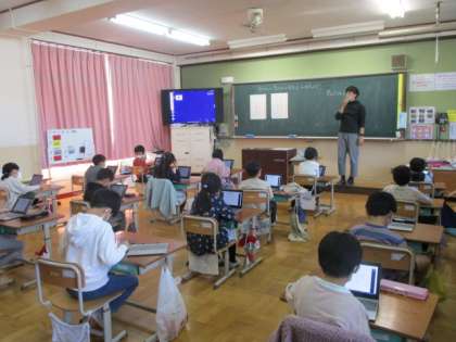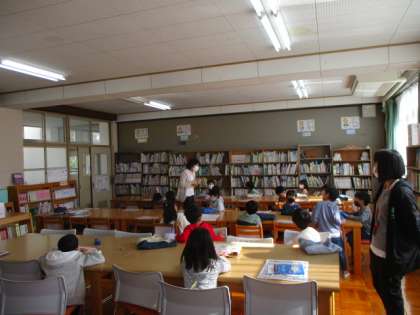 今日の3校時、ろ組では山の家新聞づくりのインタビュー練習をしていました。担任の先生と話す内容やリアクションについて確かめていました。1年生は、図書室で学校司書の先生の読み聞かせを聞いていました。みんな静かにお話の内容に入り込んでいたようです。2年生は、学習発表会の練習をしていました。タブレット端末で自分たちが発表する内容を確かめていたようです。