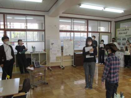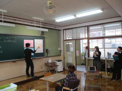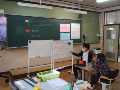 今日の6校時、5年ろ組にて校内授業研究を行いました。生活単元で山の家新聞を作るために、先生にインタビューをする学習でした。5・6年い組の担任の先生から、山の家への思いを質問や返答を繰り返しながら聞き取っていました。最初のインタビュー後に動画でふり返りを行い、そこで確認したことをもとに再度インタビューに挑戦しました。何度か発言に困る様子もありましたが、何とか自分の力で最後までやり遂げました。