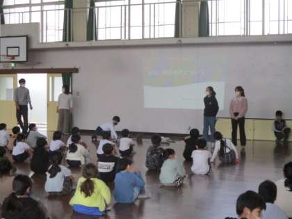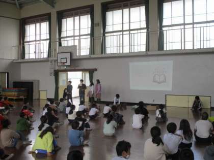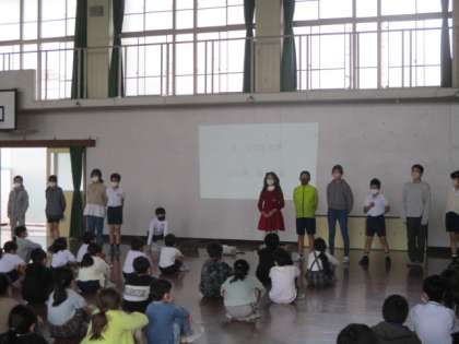 今日のもっともっとタイムで、児童集会を実施しました。代表委員が進行役となり、図書委員会からのお知らせや5・6年生からの花背山の家宿泊学習の報告などがありました。今月もしっかりと発表したり体を向けて話を聞いたりする姿が見られ、いい児童集会になったのではと思います。