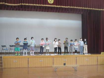 今日の5校時、ろ組は算数で分数の学習でした。通分の仕方について確認しながら問題に挑戦していました。1年生は、体育でじんとりあそびの学習でした。ちょうど温かくなってきたので、子どもたちも元気いっぱいに運動していました。2年生は、学習発表会の練習をしていました。ステージに上がって演奏や言葉のタイミングを確かめていました。