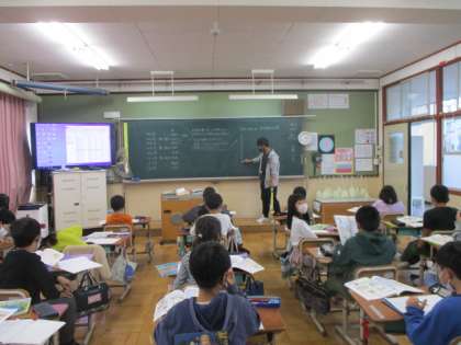 3年生は、学習発表会にむけて必要なものを作っていました。グループになっていろいろと作業を進めていました。4年生は、社会で用水のけんせつの学習でした。琵琶湖疏水ができるまでの流れを調べていました。