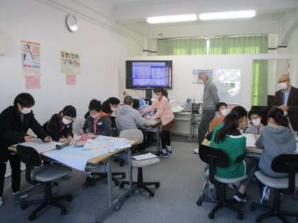 京都市役所では、午後から建設局の仕事としてどんな公園を作りたいのかをグループごとに考えて、それぞれ発表していました。