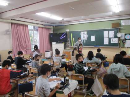 3年生は、理科で電気の通り道の学習でした。理科担当の先生と一緒に、実験しながら学習問題について確かめていました。4年生は、書写で毛筆「元気」でした。筆遣いに気をつけながら丁寧に書いていました。
