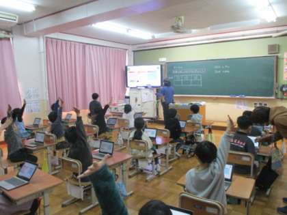 今日の3校時、ろ組では図工で版画の学習でした。どんなふうに作成していけばよいかをイメージしていました。1年生は、算数で買い物の学習でした。タブレットを使って、お金をどのように出せばよいのかを考えていました。2年生は、音楽であのね、のねずみはの学習でした。様子を思い浮かべながら楽しく歌っていました。