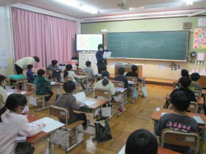 今日の4校時、ろ組では算数で百分率の学習でした。どうやって求めるのかを担任の先生と一緒に考えていました。1年生は、自主学習についてのお話でした。ノートの作り方などいろいろと教えてもらっていました。2年生は、ようすをあらわすことばの学習でした。いろいろな場面でどう書き表せばよいかを考えていました。