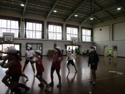5年生は、算数でこれから始まる学習内容についての話を聞いていました。6年生は、体育でバスケットボールの学習でした。