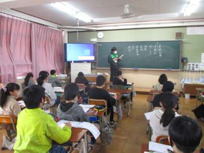 5年生は、国語で漢字ビンゴの学習でした。6年生は、総合的な学習の時間で命を守る元町を守るの学習の中で、校内にある防災グッズなどを確かめていました。