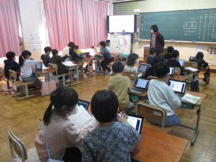 今日の5校時、ろ組では算数で割合の学習でした。1年生は、国語でにているかん字の学習でした。2年生は、体育でパスゲームの学習でした。