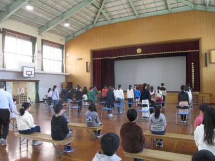 今日は、5・6年生が初めて一緒に卒業式練習を行いました。ここ数年、新型コロナウイルスの影響で卒業式に在校生が参加することはなかったのですが、今回は門出の言葉や歌の練習をしました。あと1週間ほどで本番を迎えるので、しっかりと練習に臨んでほしいと思っています。