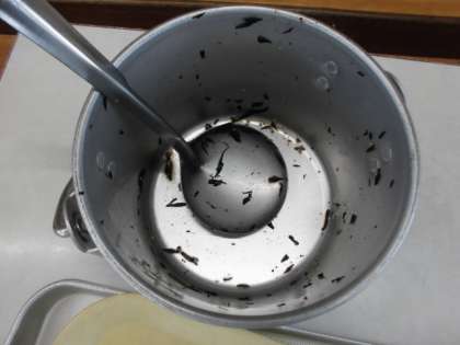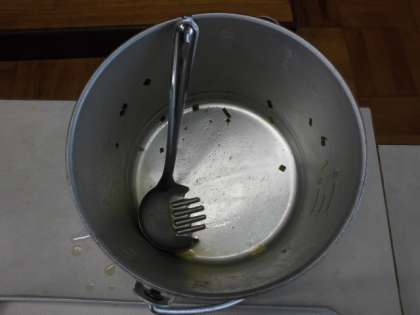 3年生の教室で食缶をのぞいてみると、きれいになくなっていました。