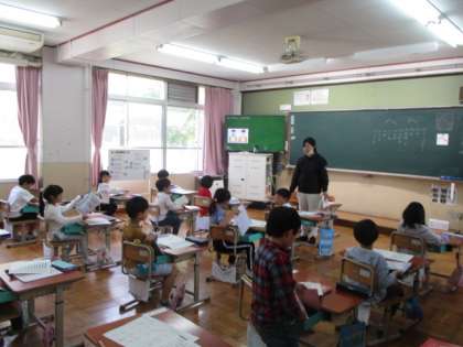 今日の5校時、1年生は国語でひらがなの練習をした後、おたよりなどの整理をしていました。2年生は、生活科でまちをはっけん大はっけんの学習でした。