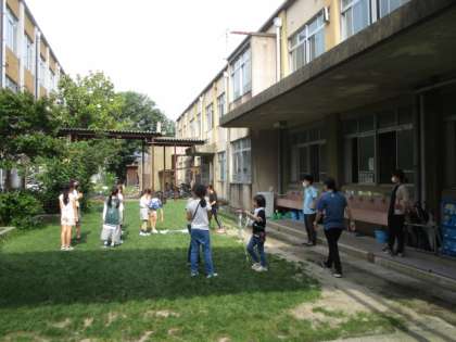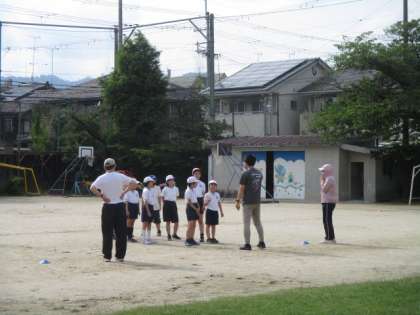 今日は金曜日なので、放課後に部活動がある日です。陸上部は、運動場で範囲を決めておにごっこをしていました。伝統文化部は、ゴムを使った遊びを楽しんでいました。バレーボール部は、学年に分かれてレシーブやアタックなどの練習をしていました。