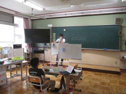 今日の3校時、3年生は理科で担当の先生がゴムや風の力の学習を進めていました。ろ組は、生活単元で何か2人で話を進めていました。