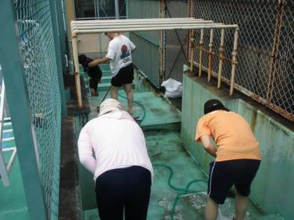 プール清掃の様子(教職員) 6月13日(火)