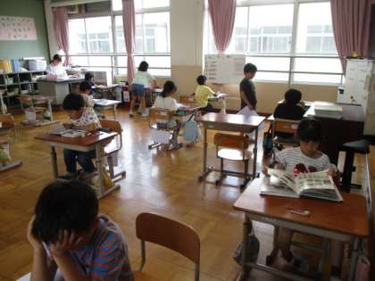 今日の5校時、ろ組は保健で病気の予防の学習でした。1年生は、国語でひらがなの練習をしていました。2年生は、算数でたし算とひき算の筆算のテストをしていました。