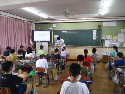 4年生は、算数で小数の学習でした。5年生は、英語科で担当の先生がWhat subjects do you like?の学習を進めていました。