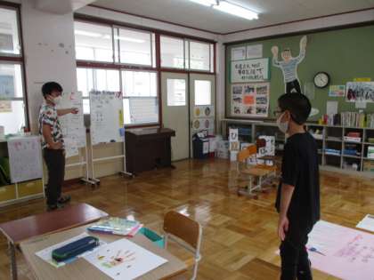 ろ組は、担任の先生と話し合いをしていました。5年生は、理科でメダカのたんじょうの学習でした。6年生は、国語で私たちにできることの学習でした。
