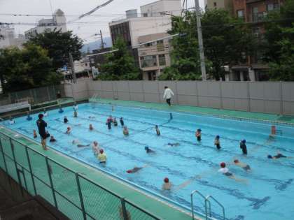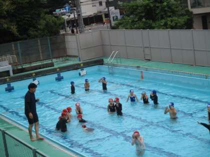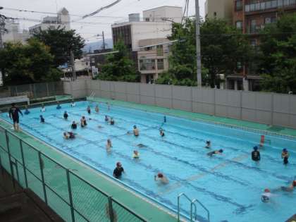 今日から水泳学習が始まりました。1・2校時には、3・4年生がプールで歩いたり浮いたりする運動をしていました。