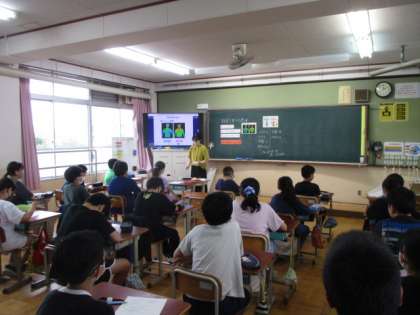 5年生は、音楽で担当の先生がリコーダーのテストをしていました。6年生は、学級活動で栄養教諭が食育の授業を進めていました。