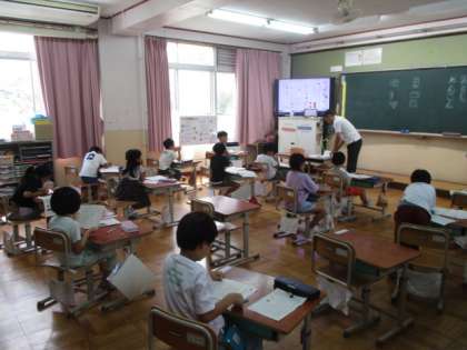 今日の5校時、ろ組ではわいわい運動会にむけての話し合いをしていました。1年生は、書写担当の先生がひらがなの書き方について学習を進めていました。2年生は、算数でまとめの練習問題に取り組んでいました。