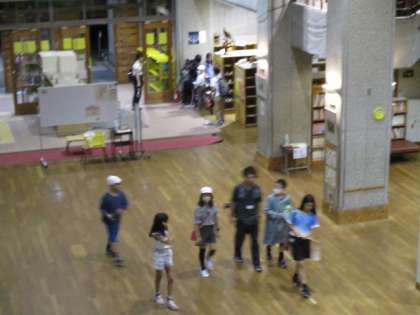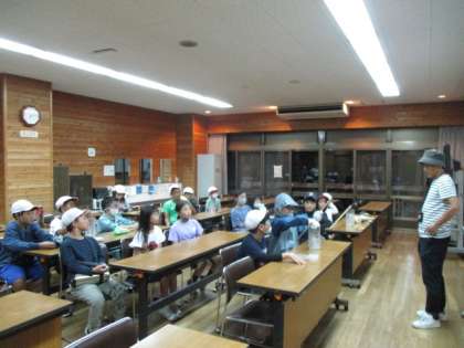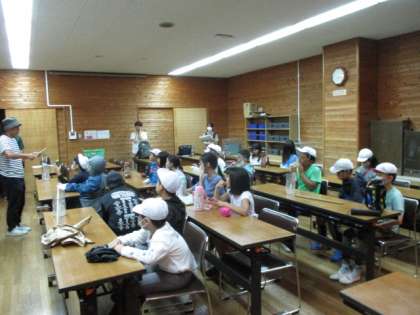 こちらは、ナイトハイクの様子です。事前に研修室で説明を聞いた後に、ペットボトルのランタンを持ちながらグループごとに時間差で出発しました。屋外での写真は撮れませんでしたが、ハイクから帰ってくるとたくさんの子どもが怖かったですと言っていました。