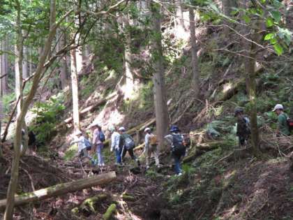 登山の様子です。最初は道幅も広かったですが、だんだん登っていくと道幅も狭くなり傾斜も高くなっていきました。