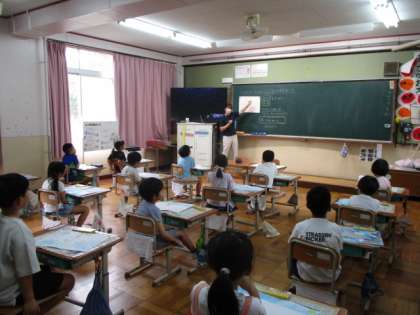 今日の3校時、ろ組は教頭先生と算数のフラッシュカード計算の学習をしていました。1年生は、図工でお話の絵の学習でした。2年生は、算数で3けたの数のひっ算の学習でした。