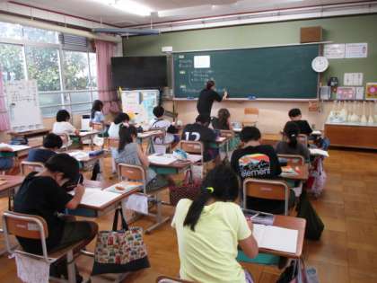 3年生は、社会で工場でつくられるものの学習でした。4年生は、算数で平行四辺形のかき方について学習していました。