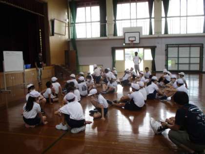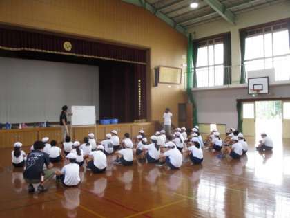 5・6年生は、合同で体育の学習をしていました。10月の運動会にむけて、みんなでいろいろなことを話し合っていたようです。