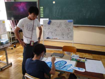 今日の2校時、ろ組と1年生は図工でお話の絵の学習でした。2年生は、学級活動で運動会の絵をかいていました。