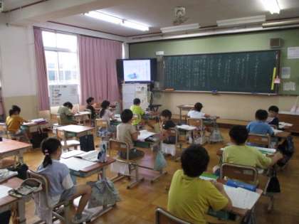 今日の5校時、1年生は図書室で本を借りたり読んだりしていました。2年生は、国語でことばあそびをしようの学習でした。