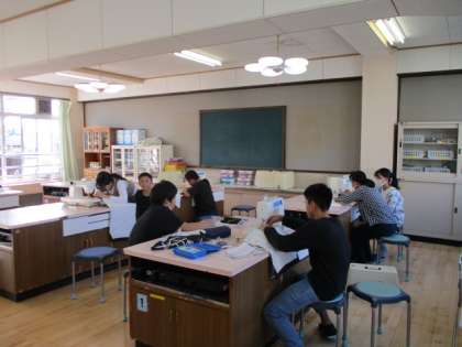 5年生は、国語で漢字の読み方・使い方の学習でした。6年生は、家庭科でナップザック作りの学習でした。家庭科室だけでなく会議室も使いながら、みんな熱心に頑張っていました。