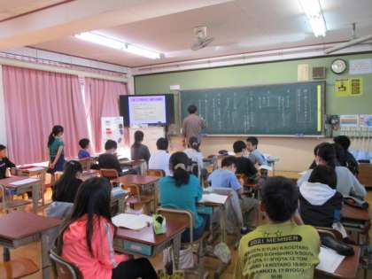5年生は、算数で平行四辺形の面積の学習でした。6年生は、全校遠足にむけての話し合いをしていました。