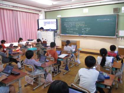 3年生は、図工で空き容器を使っての作品を鑑賞していました。4年生は、国語で世界にほこる和紙の学習でした。