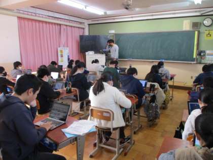 5年生は、算数で単位量あたりの大きさのまとめ問題に取り組んでいました。6年生は、理科で土地のつくりと変化の学習でした。