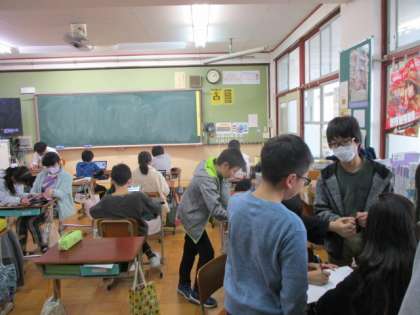 5年生は、家庭科でだしの学習をしていました。6年生は、社会のテストが終わり卒業文集制作などをしていました。