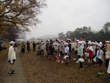 こちらは、走り終わった後の様子と閉会式です。学校へ戻る頃は結構雨が降っていましたが、着替えなどをきちんと済ませて3校時以降の授業に臨んでいます。お家へ帰ってからの健康観察もよろしくお願いします。