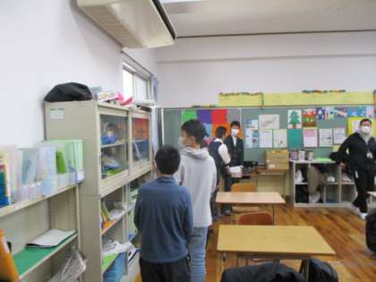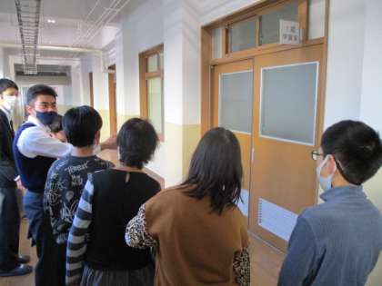 今日は、加茂川中ブロックの育成交流会がありました。今回は、最初に6年生を対象として校舎巡りがありました。加茂川中の1組の教室や学習室、図書室などを生徒のみなさんに案内してもらいました。