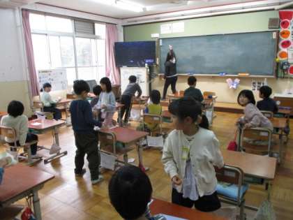 今日の5校時、1年生は生活科でふゆとともだちの学習でした。3年生は、図工でくぎうちトントンの学習でした。