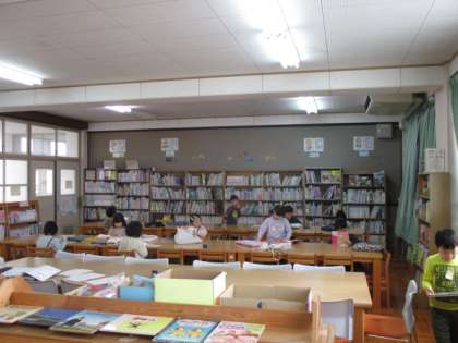 今日の3校時、ろ組は図工で版画制作をしていました。1年生は、図書室で静かに読書をしていました。2年生は、図工でまどからこんにちはの学習でした。