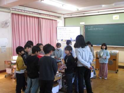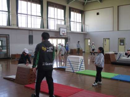 3年生は、理科担当の先生がものの重さの学習を進めていました。4年生は、体育担当の先生が跳び箱運動の学習を進めていました。