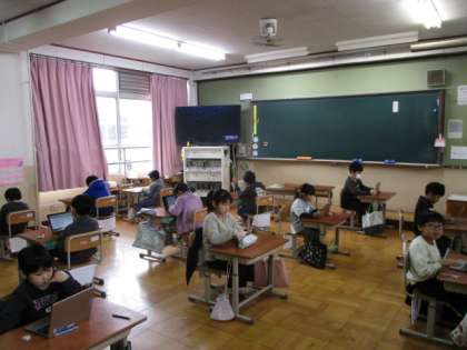 今日の3校時、1年生は図書室で静かに読書をしていました。2年生は、漢字のまとめテストの後はミライシードなどをしていました。