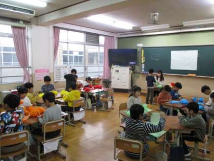今日の5校時、1年生は算数のテストをしていました。2年生は、卒業にむけての飾りを作っていました。3年生は、総合的な学習の時間でわたしたちのかも川未来のかも川の学習でした。