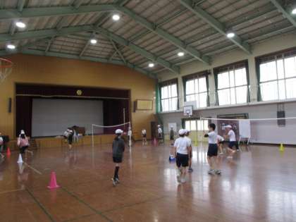 5年生は、体育でソフトバレーボールの学習でした。6年生は、外国語担当の先生がJunior High School Lifeの学習を進めていました。
